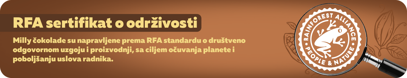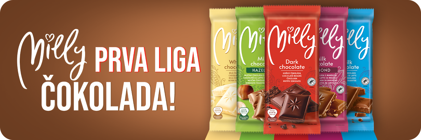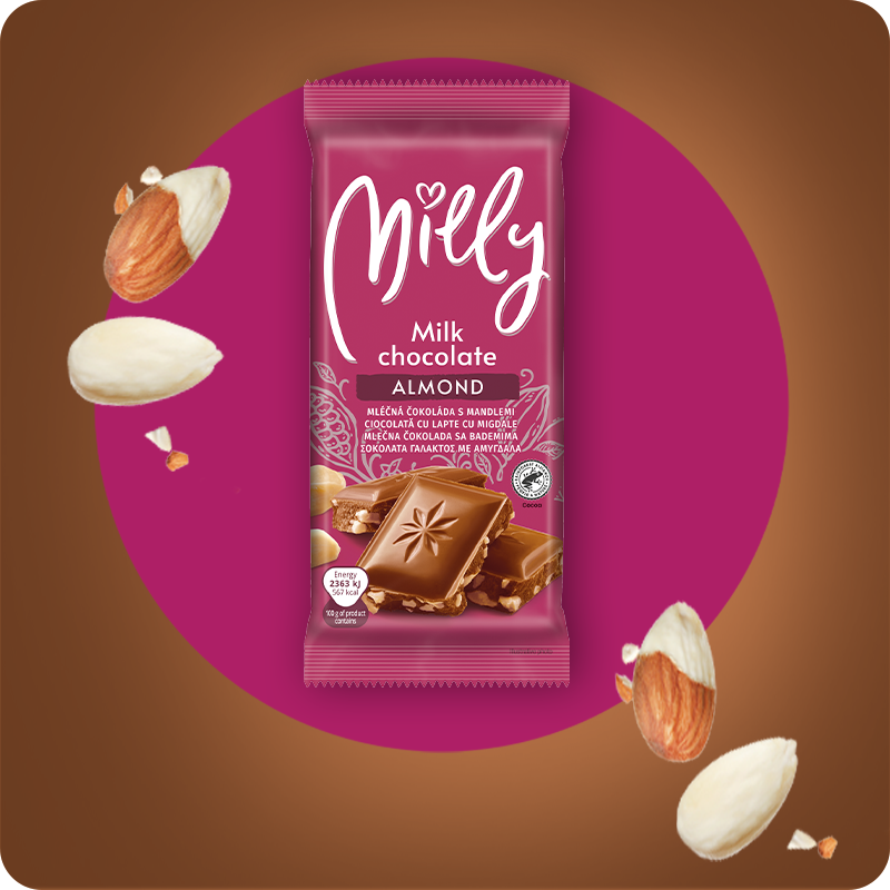 Maxi ti donosi Milly čokolade napravljene za sve sladokusce koji vole kvalitetne poslastice po pristupačnoj ceni! Milly čokolade dolaze u dovoljno varijacija za svačiji ukus, tu su: mlečna čokolada, mlečna čokolada sa bademom ili mlečna čokolada sa lešnikom, crna i bela Milly čokolada. Ako ti je važna fer proizvodnja, ne moraš da biraš, jer sve Milly čokolade nose i RFA sertifikat koji stoji za fer i održivu proizvodnju!