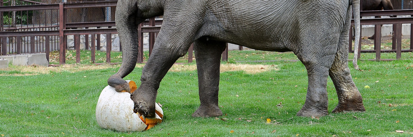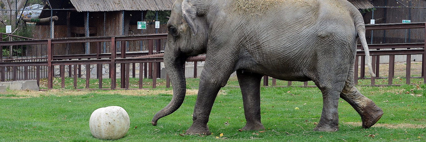 Beograd 02.novembar 2018 - Kao da je predosetila da će ovo biti specijalan dan za nju. Slonica Tvigi, najstariji stanovnik beogradskog Zoološkog vrta, od ranog jutra je bila vesela. Navikla je na boje jeseni, ali joj je ipak jedna u ovo doba godine omiljena – narandžasta.