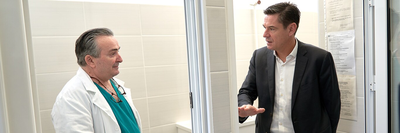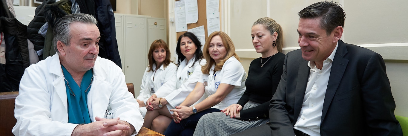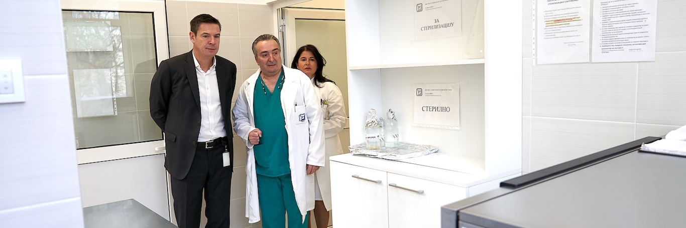 Priliku da prvi pogledaju kako sada izgleda renovirana laboratorija koju će koristiti medicinsko osoblje Instituta imali su prof. dr Radan Džodić, v.d. direktora Instituta za onkologiju i radiologiju i Kvantan Roje, generalni direktor kompanije Delez Srbija.