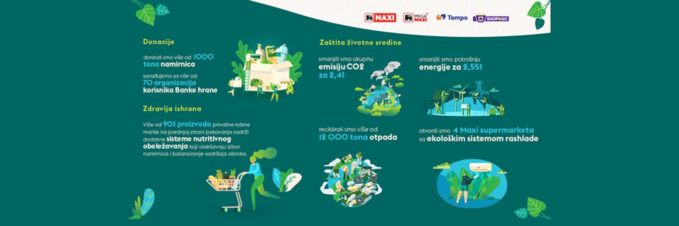 Zahvaljujući strateškoj saradnji sa više od 200 domaćih proizvođača voća i povrća, kupci su i tokom prethodne godine mogli da uživaju u proizvodima lokalnog porekla na MAXI pijacama. Zahvaljujući saradnji kompanije sa Poljoprivrednim i Fakultetom veterinarske medicine povećana je ponuda voća i povrća bez ostataka pesticida, a zdravije pileće meso uzgajano bez upotrebe antibiotika standardna je ponuda ovog trgovinskog lanca.