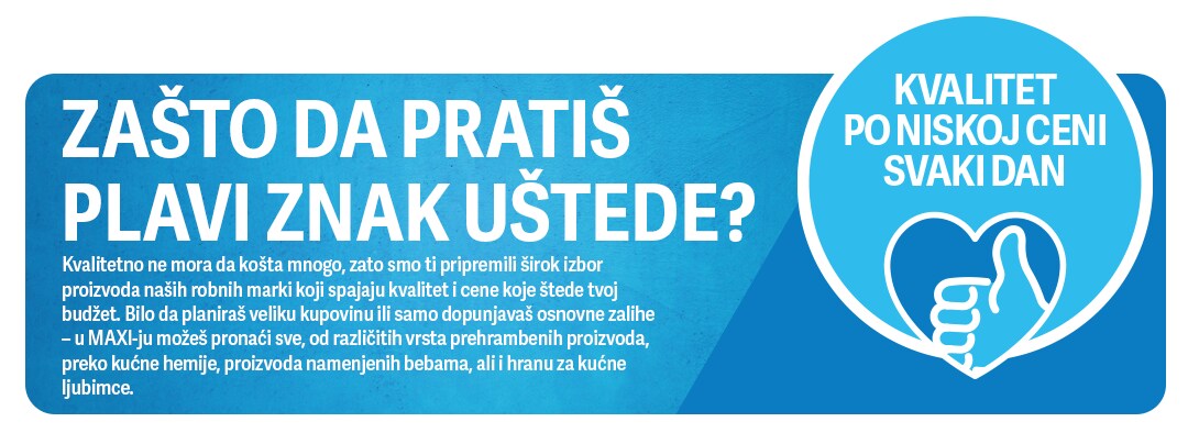 Plavi znak uštede je tvoj vodič za povoljnu kupovinu. Pronađi proizvode naših robnih marki koje su obeležene ovim znakom i kupuj kvalitetne proizvode po niskoj ceni svaki dan.